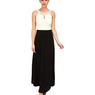 Sangria Haltered Keyhole Neckline Color Block Gown