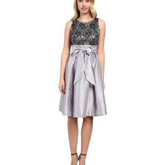 Sangria Lace Bodice and Shantung Skirt Fit and Flare with Self Tie Belt