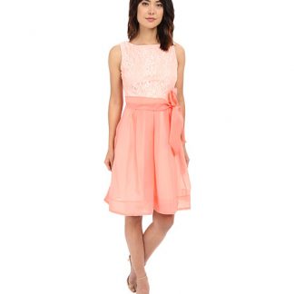 Sangria Lace and Organza Fit & Flare Dress w/ Self Tie Belt