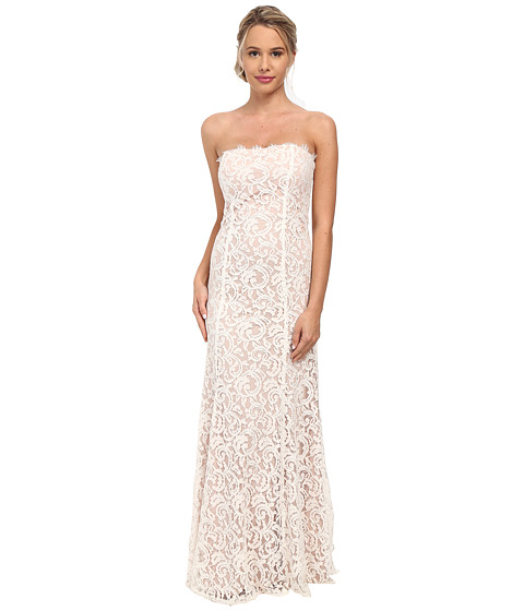 Alejandra Sky Strapless Lace Gown w/ Train Back Hem