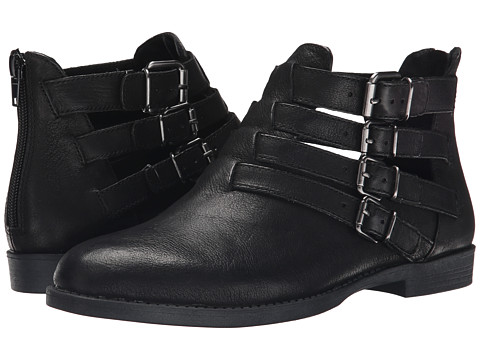 Four adjustable buckles at side with a zipper closure at heel